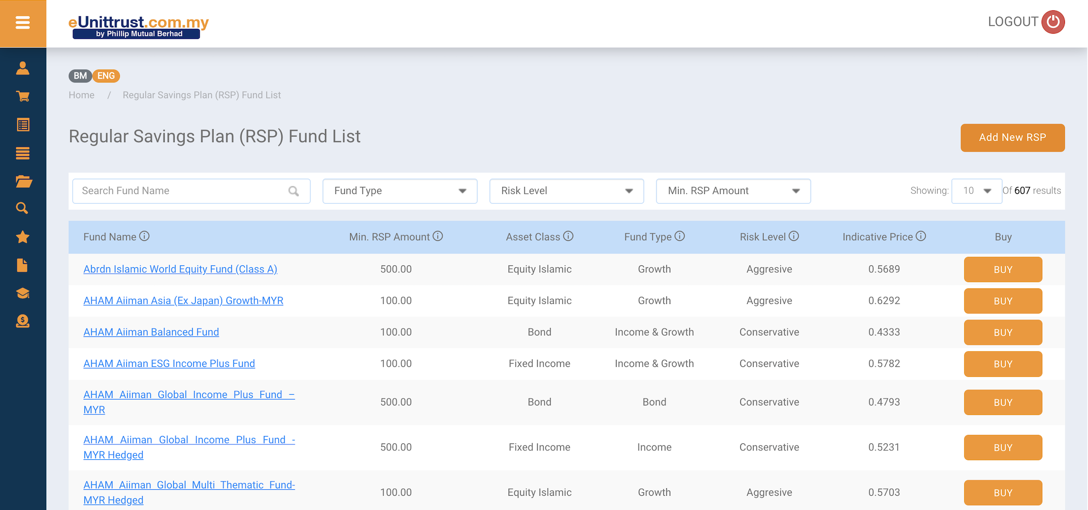 Step 3: Choose your fund(s) or Add New RSP