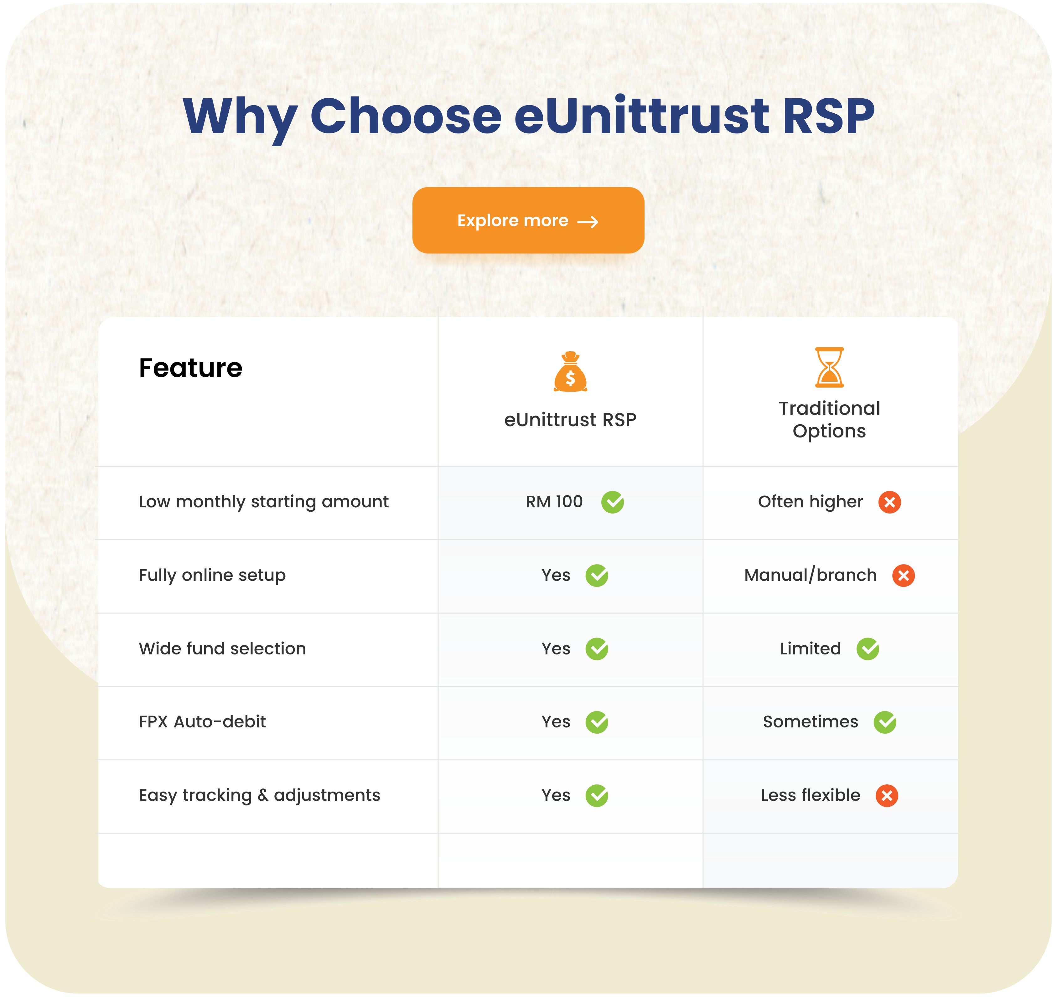 eUnittrustβs Regular Savings Plan (RSP) is an automated way to invest a fixed